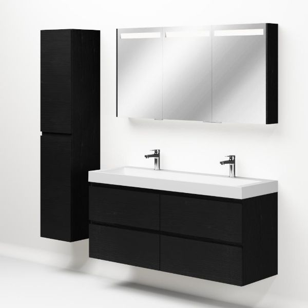 | Bellanti Gisella/Renzo-q badmeubel 140x46 4 softclose laden zwart mat eiken greeploos wastafel mat wit met 2 kraangaten |