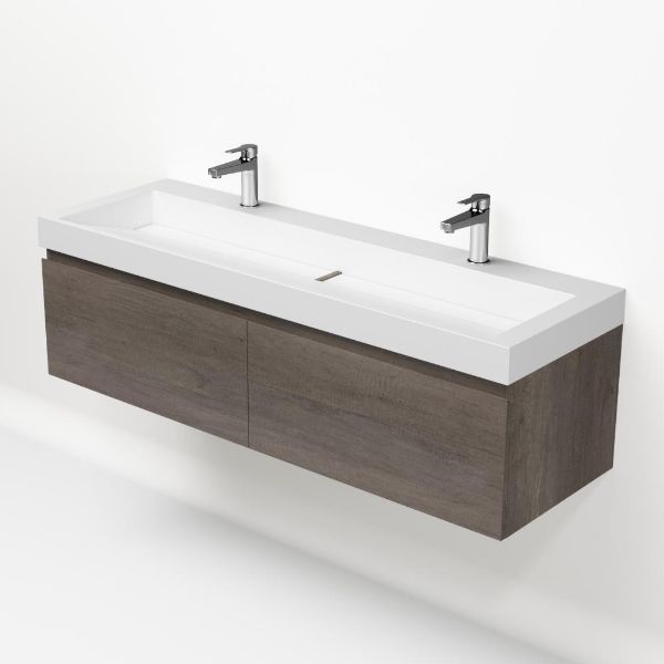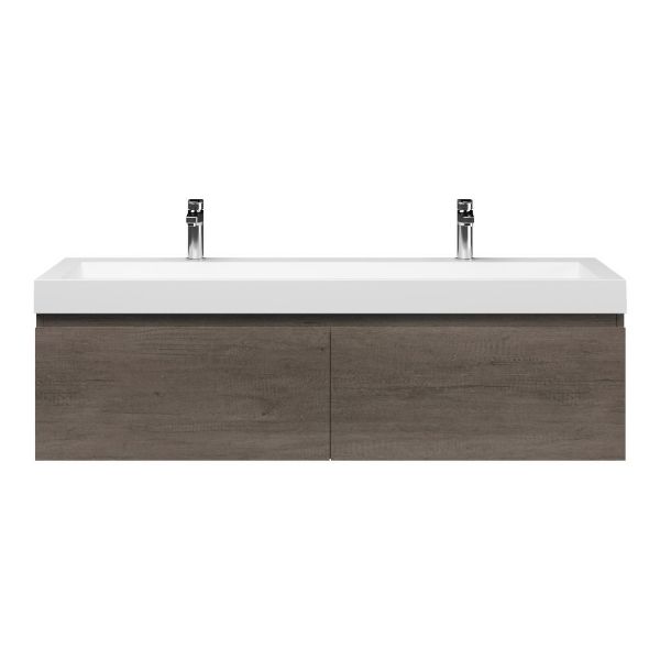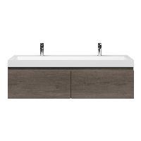 Greeploos badkamermeubel in de kleur olm donker grijs is 140 cm breed. De wastafel is vervaardig in quartz en heeft de kleur wit mat keramiek. Dit badkamermeubel met deze wastafel is leverbaar tussen de 60 cm t/m 160 cm