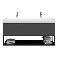 | Bellanti Solo/Tela/Renzo-q badmeubel 140x46 2 softclose laden antraciet mat greeploos wastafel mat wit met 2 kraangaten met mat zwart metalen frame |