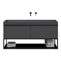 | Bellanti Solo/Tela/Renzo-q badmeubel 140x46 2 softclose laden antraciet mat greeploos quartz wastafel mat grijs zonder kraangaten met mat zwart metalen frame |