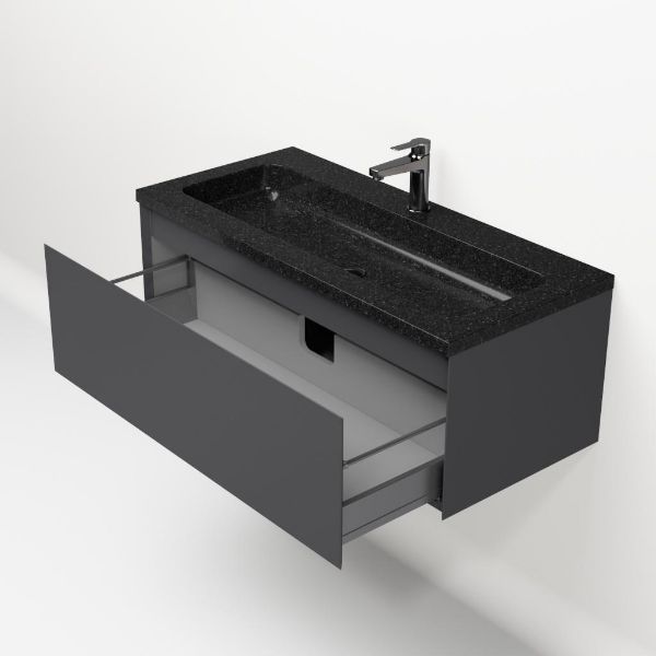 | | Bellanti Solo/Square badmeubel 100x46 1 softclose lade antraciet mat greeploos natuursteen wastafel shanxi black met 1 kraangat |