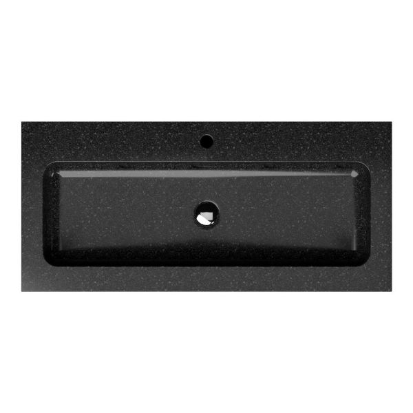 Greeploos badkamermeubel in de kleur zwart mat eiken is 100 cm breed. De wastafel is vervaardig in natuursteen en heeft de kleur shanxi black. Dit badkamermeubel met deze wastafel is leverbaar tussen de 60 cm t/m 120 cm