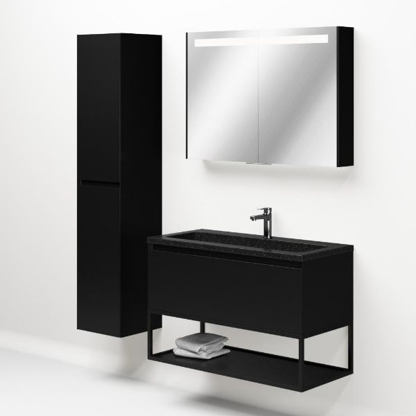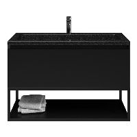 | | Bellanti Solo/Tela/Square badmeubel 100x46 1 softclose lade zwart mat greeploos natuursteen wastafel shanxi black met 1 kraangat met mat zwart metalen frame |