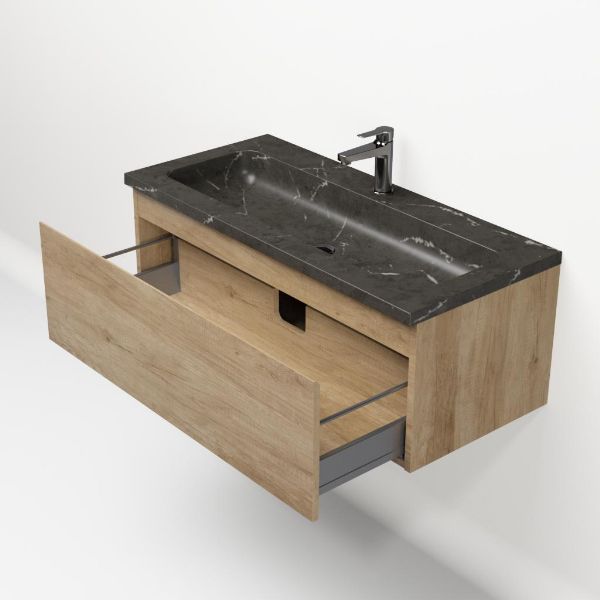 | | Bellanti Solo/Square badmeubel 100x46 1 softclose lade olm greeploos natuursteen wastafel blue stone met 1 kraangat |