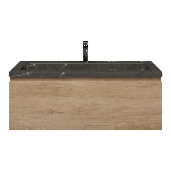 Greeploos badkamermeubel in de kleur olm is 100 cm breed. De wastafel is vervaardig in natuursteen en heeft de kleur blue stone. Dit badkamermeubel met deze wastafel is leverbaar tussen de 60 cm t/m 120 cm