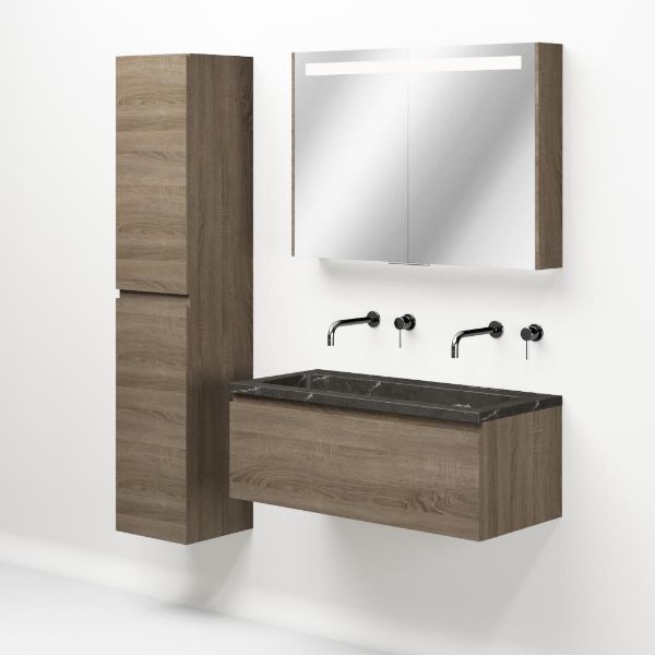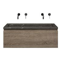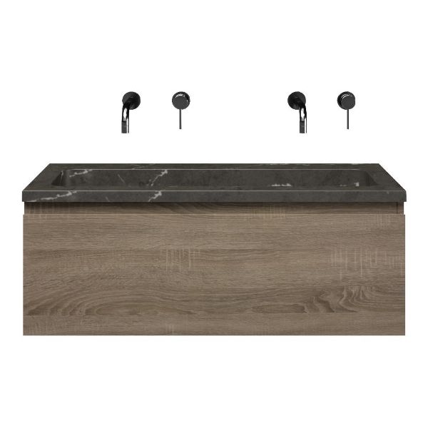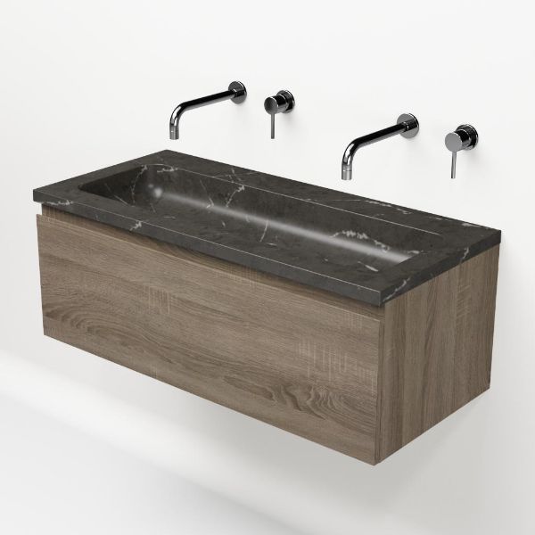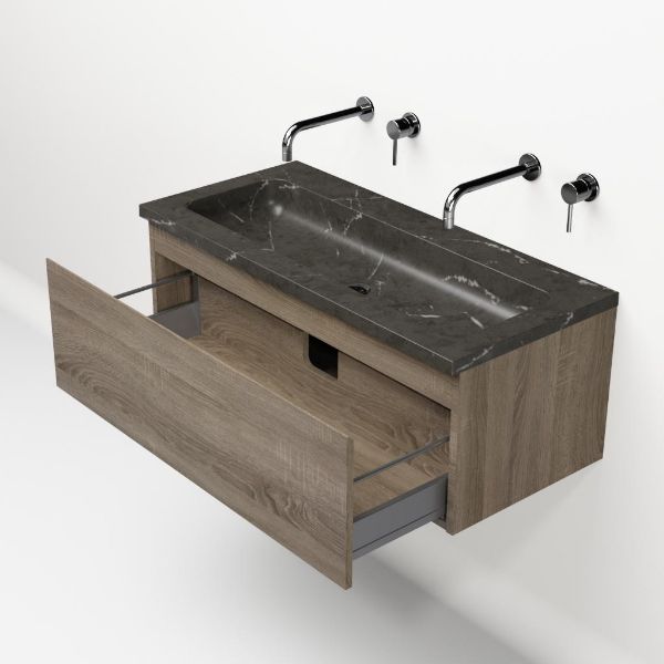| Bellanti Solo/Square badmeubel 100x46 1 softclose lade eiken donker greeploos natuursteen wastafel blue stone zonder kraangaten |