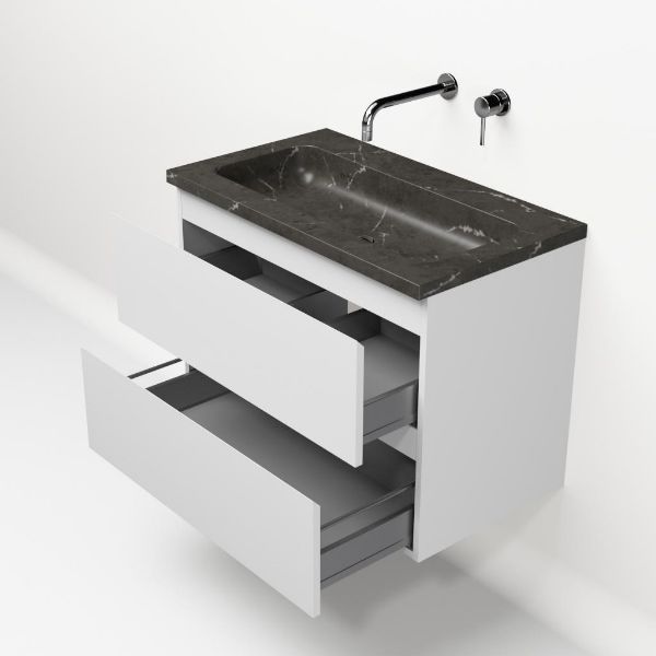 | | Bellanti Gisella/Square badmeubel 80x46 2 softclose laden wit mat greeploos natuursteen wastafel blue stone zonder kraangaten |