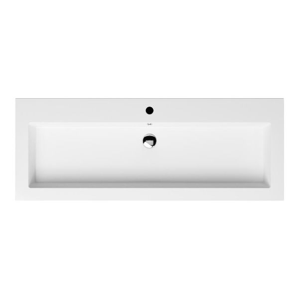 Greeploos badkamermeubel in de kleur wit mat is 120 cm breed. De wastafel is vervaardig in polystone en heeft de kleur wit. Dit badkamermeubel met deze wastafel is leverbaar tussen de 60 cm t/m 160 cm