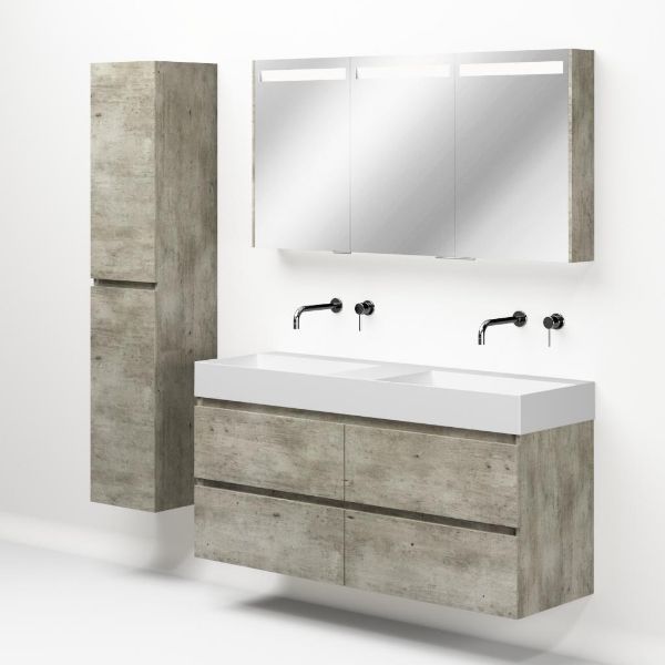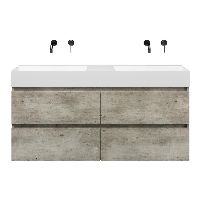 | | Bellanti Elena/Azzurra badmeubel 140x46 4 softclose laden steigerhout licht grijs greeploos keramische wastafel dubbel wit mat zonder kraangaten |