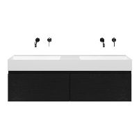 | | Bellanti Solo/Azzurra badmeubel 140x46 2 softclose laden mat zwart eiken greeploos keramische wastafel dubbel wit mat zonder kraangaten |