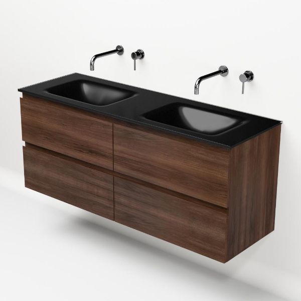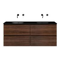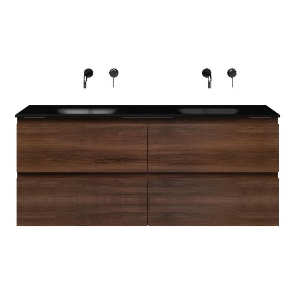 | | Bellanti Gisella/Glass badmeubel 140x46 4 softclose laden walnoot greeploos glazen wastafel dubbel zwart zonder kraangaten |
