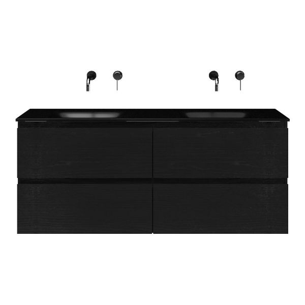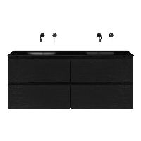 | | Bellanti Gisella/Glass badmeubel 140x46 4 softclose laden zwart mat eiken greeploos glazen wastafel dubbel zwart zonder kraangaten |