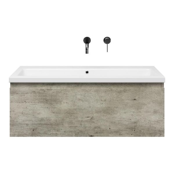 | Bellanti Solo/Amelia badmeubel 100x46 1 softclose lade steigerhout look grijs greeploos keramische wastafel wit glans zonder kraangaten |