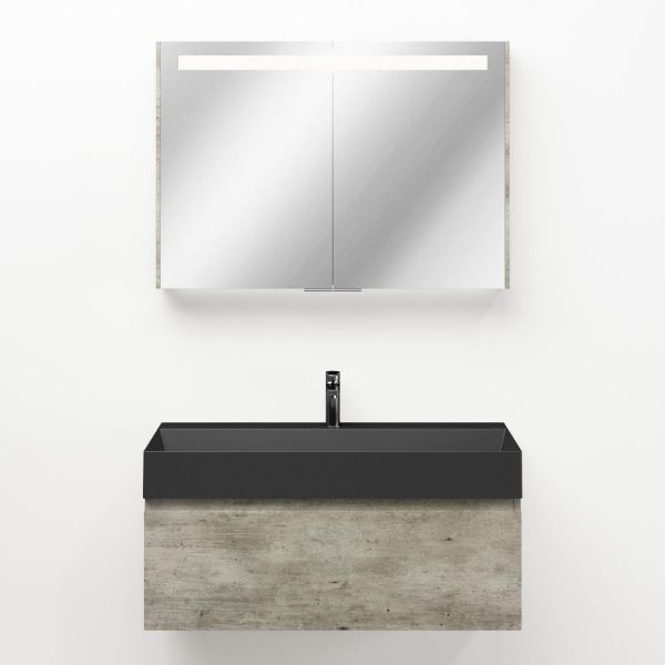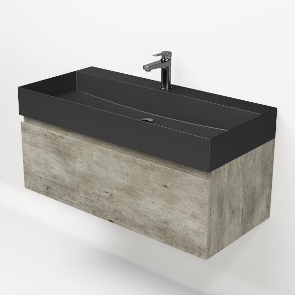 | Bellanti Solo/Azzurra badmeubel 100x46 1 softclose lade steigerhout look grijs greeploos keramische wastafel antraciet mat met 1 kraangat |