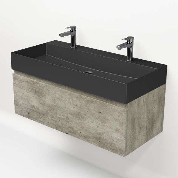 | Bellanti Solo/Azzurra badmeubel 100x46 1 softclose lade steigerhout look grijs greeploos keramische wastafel antraciet mat met 2 kraangaten |