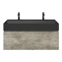 | | Bellanti Solo/Azzurra badmeubel 100x46 1 softclose lade steigerhout look grijs greeploos keramische wastafel antraciet mat met 2 kraangaten |