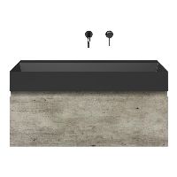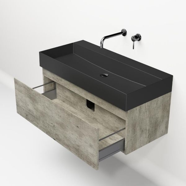 | | Bellanti Solo/Azzurra badmeubel 100x46 1 softclose lade steigerhout look grijs greeploos keramische wastafel antraciet mat zonder kraangaten |