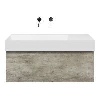 | Bellanti Solo/Azzurra badmeubel 100x46 1 softclose lade steigerhout look grijs greeploos keramische wastafel links wit glans zonder kraangaten |