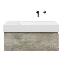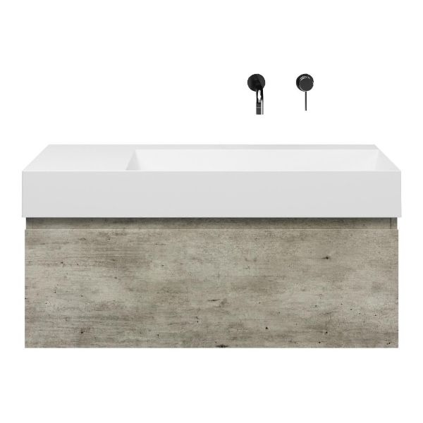 | | Bellanti Solo/Azzurra badmeubel 100x46 1 softclose lade steigerhout look grijs greeploos keramische wastafel rechts wit glans zonder kraangat |
