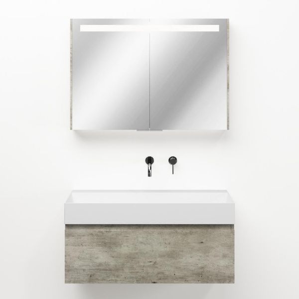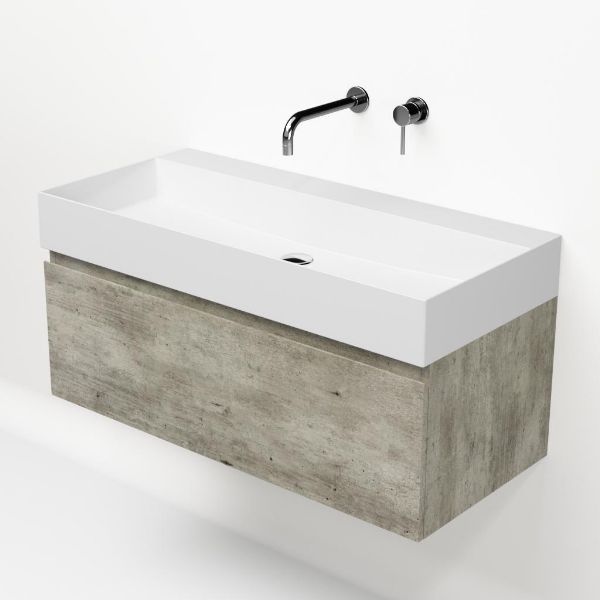 | | Bellanti Solo/Azzurra badmeubel 100x46 1 softclose lade steigerhout look grijs greeploos keramische wastafel wit glans zonder kraangaten |
