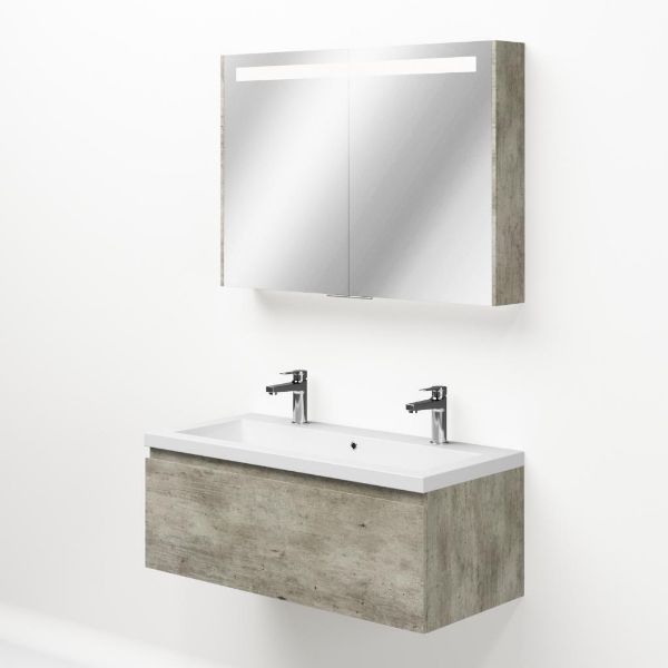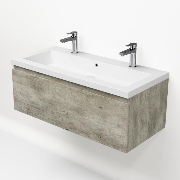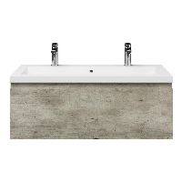 | | Bellanti Solo/Esta badmeubel 100x46 1 softclose lade steigerhout look grijs greeploos polystone wastafel wit met 2 kraangaten |