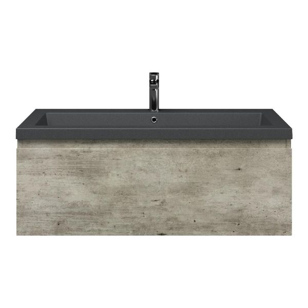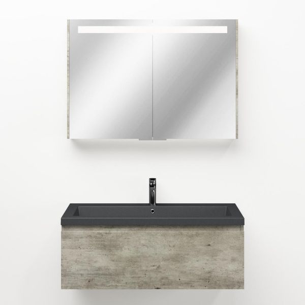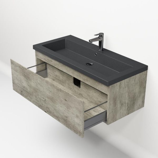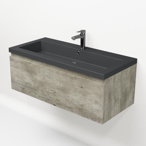| | Bellanti Solo/Esta-Q badmeubel 100x46 1 softclose lade steigerhout look grijs greeploos quartz wastafel mat grijs met 1 kraangat |