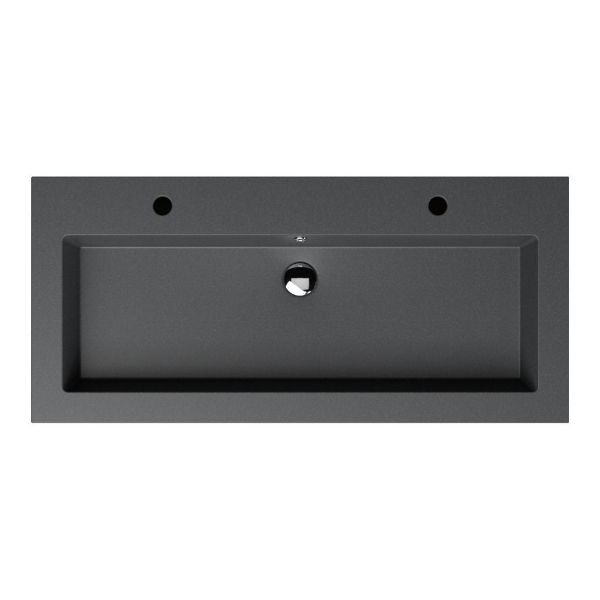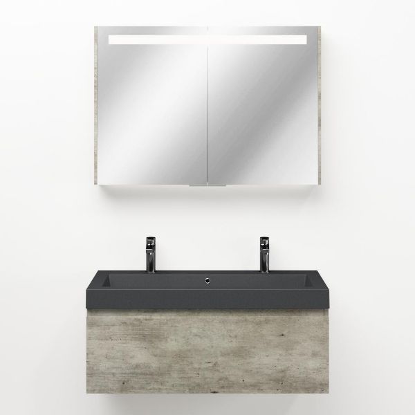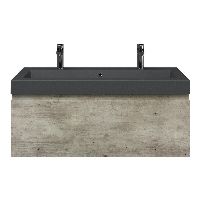 | | Bellanti Solo/Esta-Q badmeubel 100x46 1 softclose lade steigerhout look grijs greeploos quartz wastafel mat grijs met 2 kraangaten |