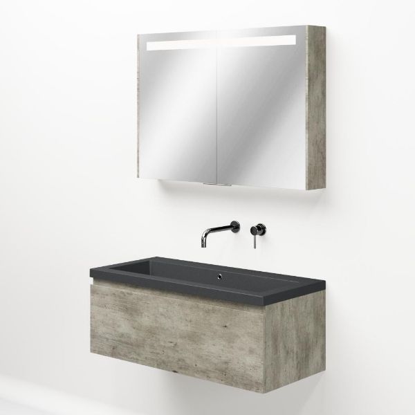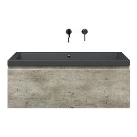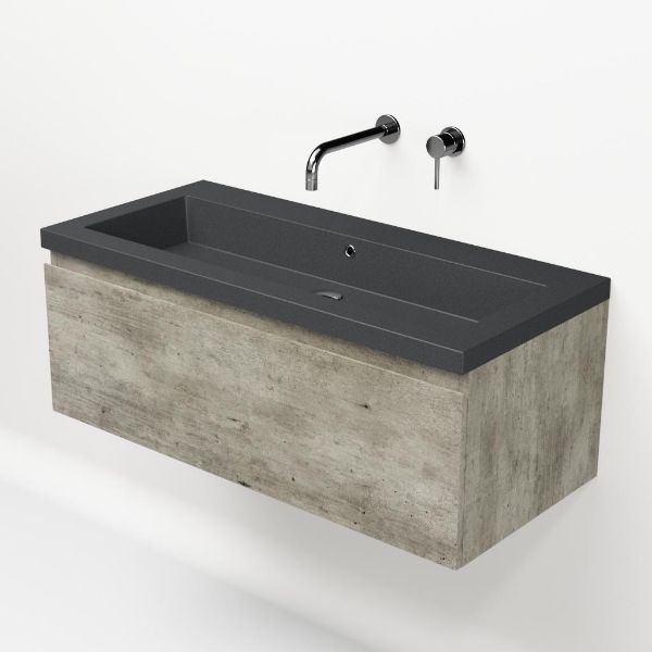 | | Bellanti Solo/Esta-Q badmeubel 100x46 1 softclose lade steigerhout look grijs greeploos quartz wastafel mat grijs zonder kraangat |