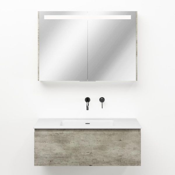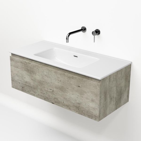 | Bellanti Solo/Etna badmeubel 100x46 1 softclose lade steigerhout look grijs greeploos keramische wastafel wit zonder kraangaten |