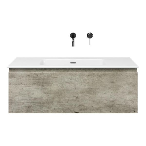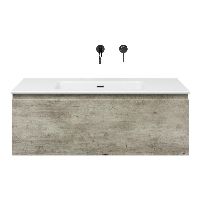 | | Bellanti Solo/Etna badmeubel 100x46 1 softclose lade steigerhout look grijs greeploos keramische wastafel wit zonder kraangaten |