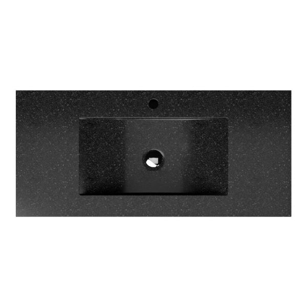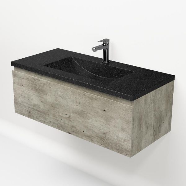 | Bellanti Solo/Faro Stone badmeubel 100x46 1 softclose lade steigerhout look grijs greeploos natuursteen wastafel blue stone met 1 kraangat |