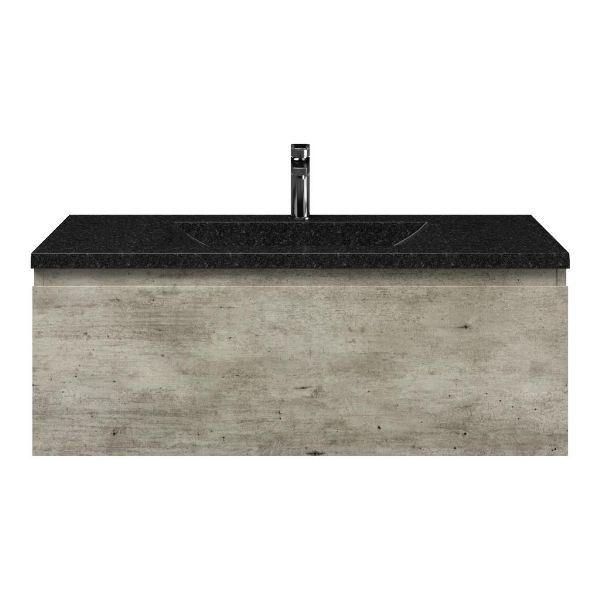 | | Bellanti Solo/Faro Stone badmeubel 100x46 1 softclose lade steigerhout look grijs greeploos natuursteen wastafel blue stone met 1 kraangat |