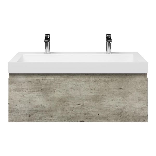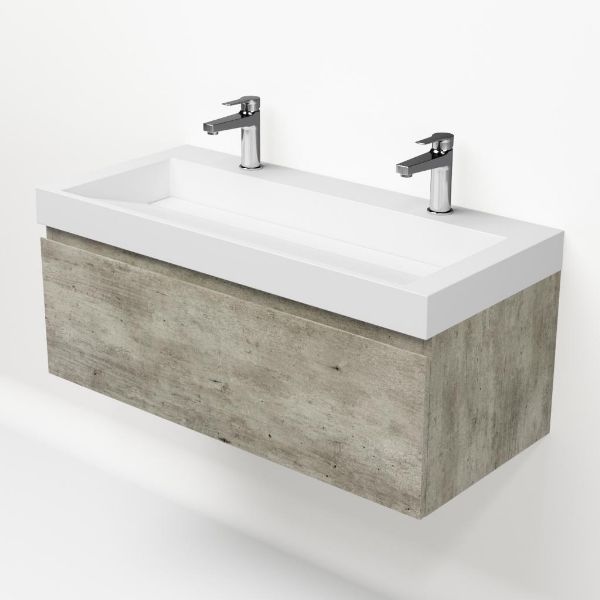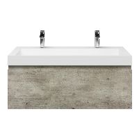 | | Bellanti Solo/Renzo badmeubel 100x46 1 softclose lade steigerhout look grijs greeploos polystone wastafel wit met 2 kraangaten |