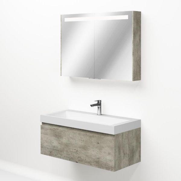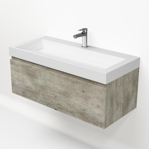 | Bellanti Solo/Renzo-q badmeubel 100x46 1 softclose lade steigerhout look grijs greeploos quartz wastafel mat wit met 1 kraangat |