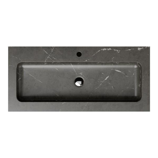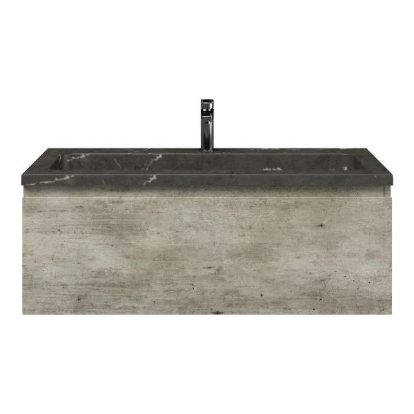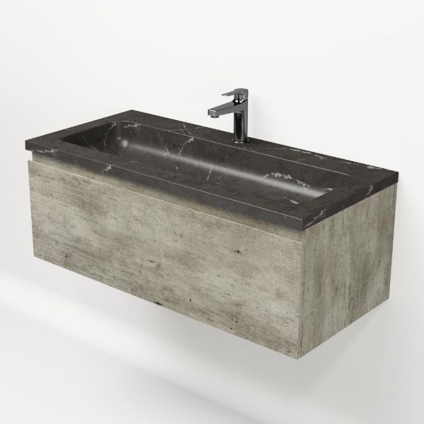 | Bellanti Solo/Square badmeubel 100x46 1 softclose lade steigerhout look grijs greeploos natuursteen wastafel blue stone met 1 kraangat |
