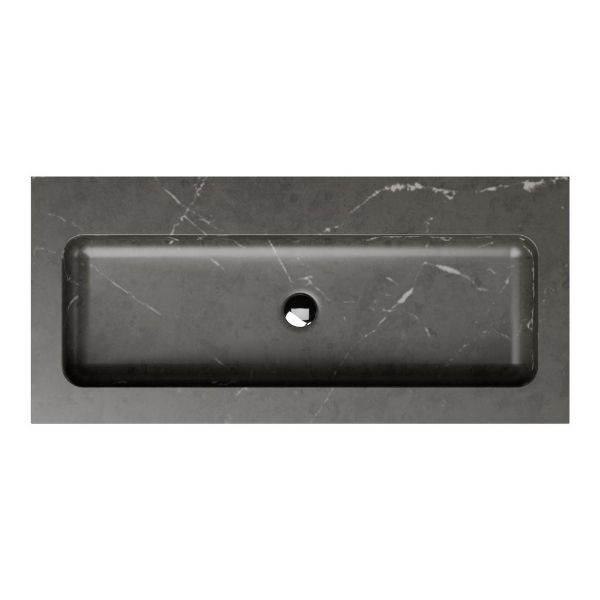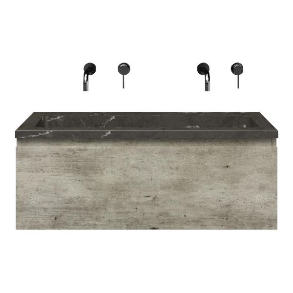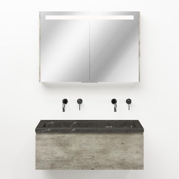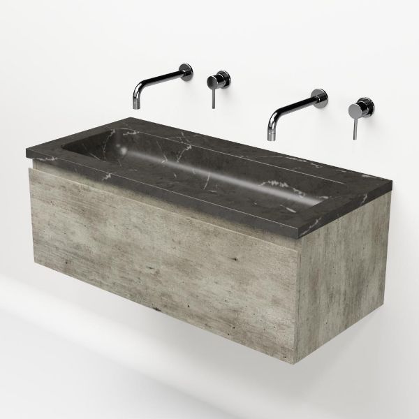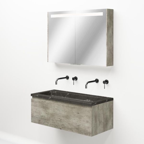 | Bellanti Solo/Square badmeubel 100x46 1 softclose lade steigerhout look grijs greeploos natuursteen wastafel blue stone zonder kraangaten |
