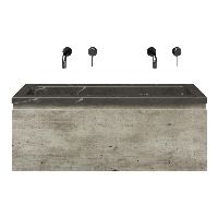| | Bellanti Solo/Square badmeubel 100x46 1 softclose lade steigerhout look grijs greeploos natuursteen wastafel blue stone zonder kraangaten |