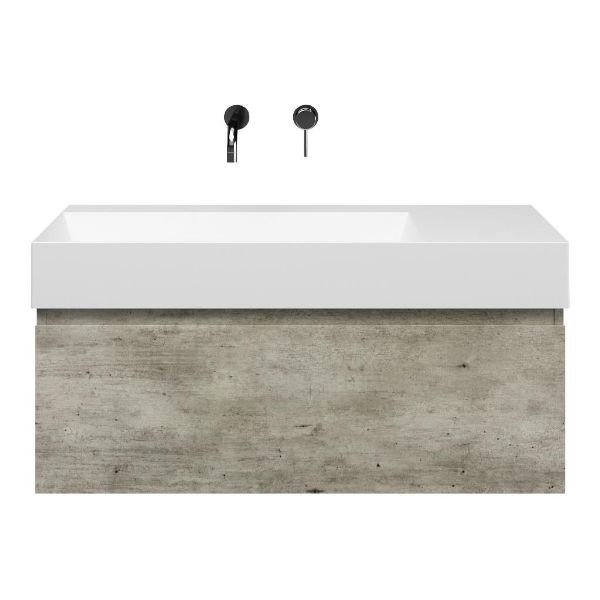 | Bellanti Solo/Azzurra badmeubel 100x46 1 softclose lade steigerhout look grijs greeploos keramische wastafel links wit mat zonder kraangaten |