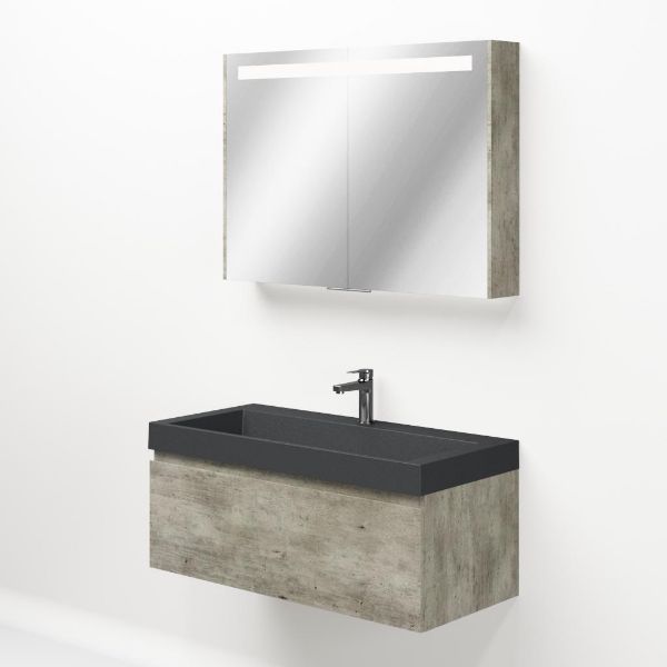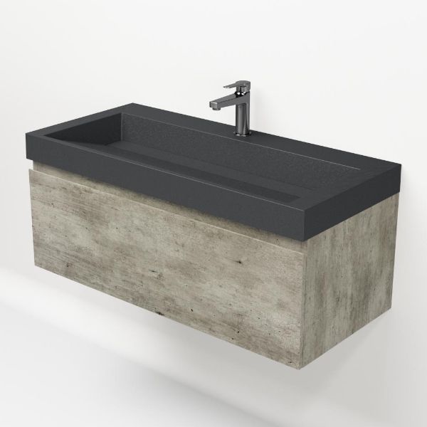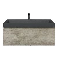 | | Bellanti Solo/Renzo-q badmeubel 100x46 1 softclose lade steigerhout look grijs greeploos quartz wastafel mat grijs met 1 kraangat |
