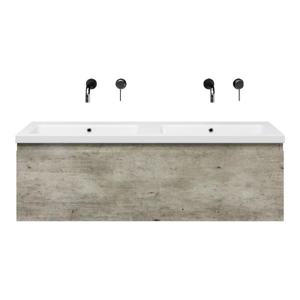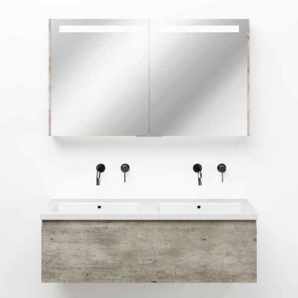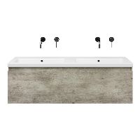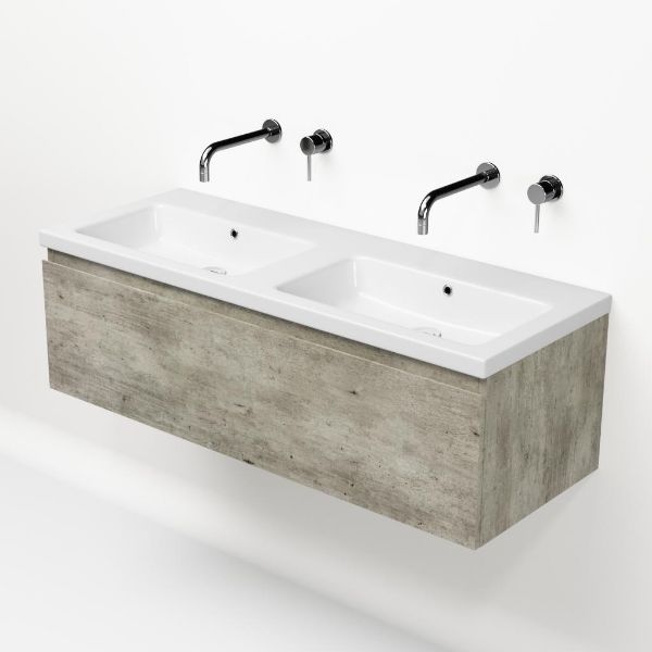 | | Bellanti Solo /Amelia badmeubel 120x46 1 softclose lade steigerhout look grijs greeploos keramische wastafel dubbel wit glans zonder kraangaten |