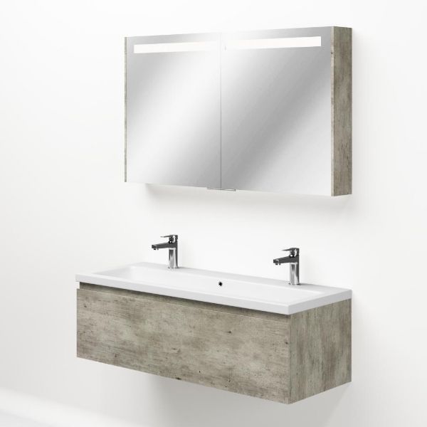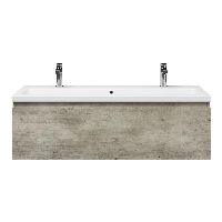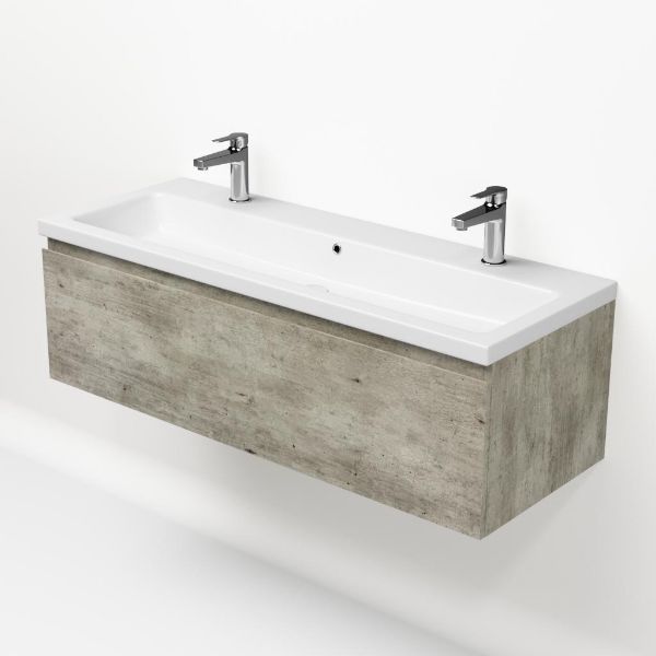 | | Bellanti Solo /Amelia badmeubel 120x46 1 softclose lade steigerhout look grijs greeploos keramische wastafel wit glans met 2 kraangaten |