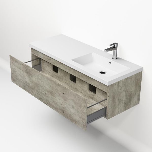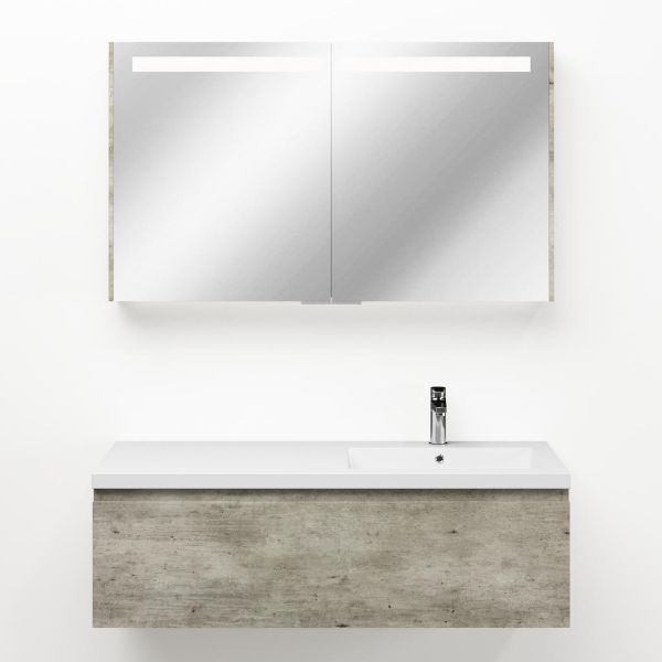 | | Bellanti Solo/Esta badmeubel 120x46 1 softclose lade steigerhout look grijs greeploos polystone wastafel wit met 1 kraangat |