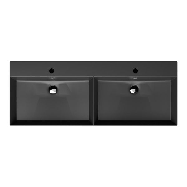 Greeploos badkamermeubel in de kleur steigerhout licht grijs is 120 cm breed.  De wastafel is vervaardig in keramiek en heeft de kleur antraciet mat keramiek. Dit badkamermeubel met deze wastafel is leverbaar tussen de 60 cm t/m 140 cm