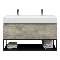 | | Bellanti Solo/Tela /Azzurra badmeubel 120x46 1 softclose lade steigerhout look grijs greeploos keramische wastafel wit glans met 2 kraangaten met mat zwart metalen frame |