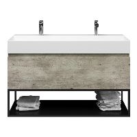 | | Bellanti Solo/Tela /Azzurra badmeubel 120x46 1 softclose lade steigerhout look grijs greeploos keramische wastafel wit mat met 2 kraangaten met mat zwart metalen frame |