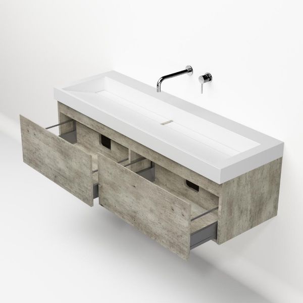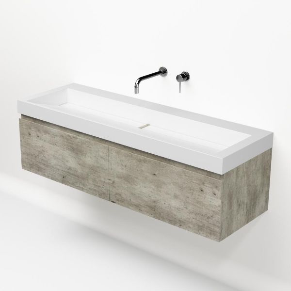 | | Bellanti Solo/Renzo-q badmeubel 140x46 2 softclose laden steigerhout look grijs greeploos quartz wastafel mat wit zonder kraangaten |