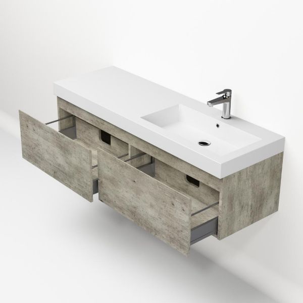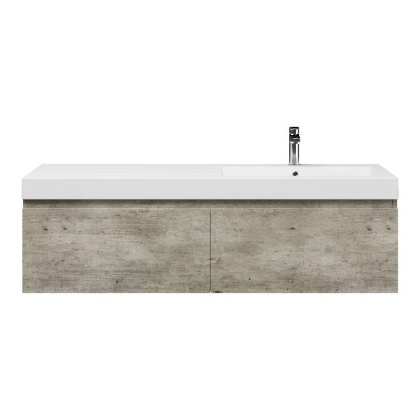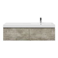 Bellanti Solo/Esta badmeubel 140x46 2 softclose laden steigerhout look grijs greeploos polystone wastafel wit met 1 kraangat