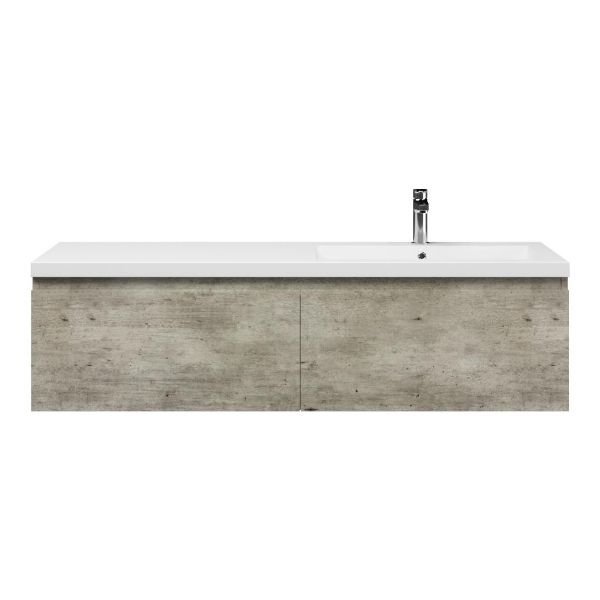 Bellanti Solo/Esta badmeubel 140x46 2 softclose laden steigerhout look grijs greeploos polystone wastafel wit met 1 kraangat