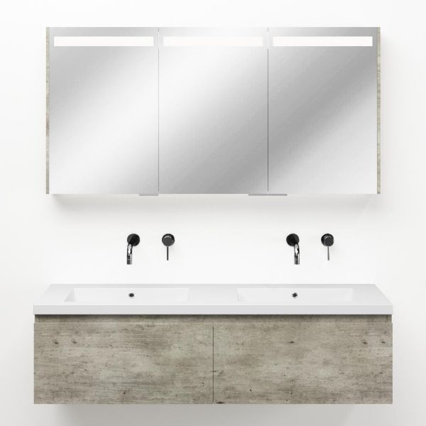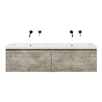 Bellanti Solo/Esta badmeubel 140x46 2 softclose laden steigerhout look grijs greeploos polystone wastafel dubbel wit zonder kraangaten