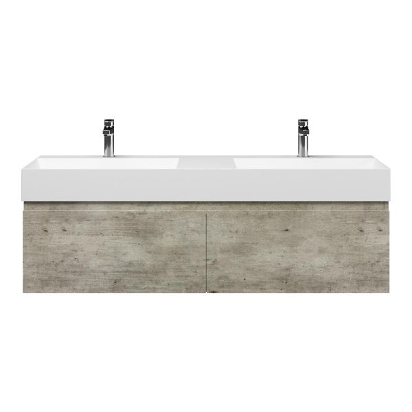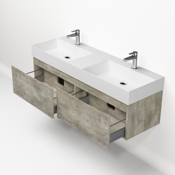 | | Bellanti Solo/Azzurra badmeubel 140x46 2 softclose laden steigerhout look grijs greeploos keramische wastafel dubbel wit mat met 2 kraangaten |